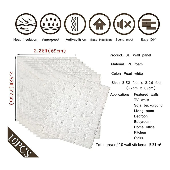 - 🎨 Diseño 3D ultrarealista: Crea la ilusión de una pared de ladrillo auténtica sin el peso, el costo ni el desorden.