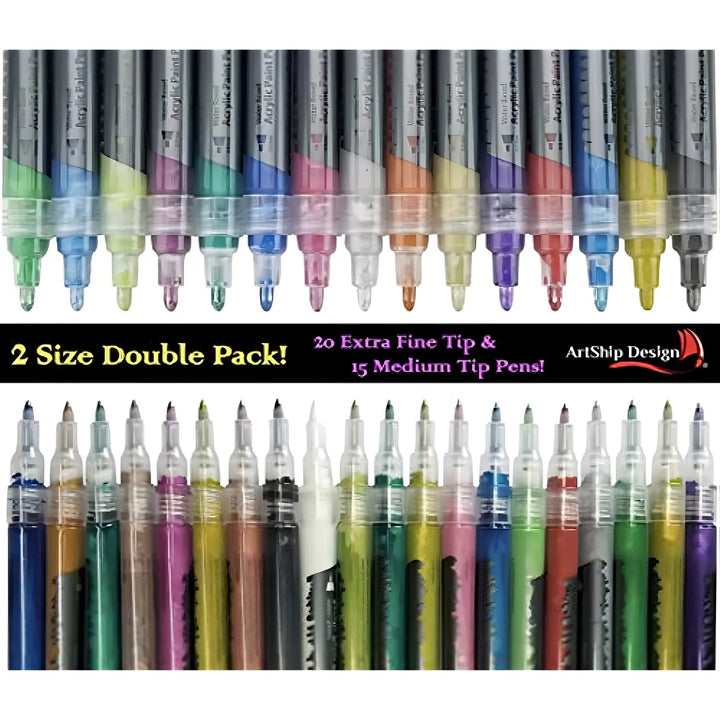 ¿Alguna vez has soñado con dar vida a tus ideas de una manera vibrante y duradera? Con nuestro paquete doble de 35 bolígrafos de pintura acrílica metálica, ese sueño se hace realidad. Este set incluye 20 bolígrafos de punta extrafina y 15 de punta mediana, perfectos para detalles precisos y cobertura amplia. Con 22 colores diferentes, tu creatividad no tendrá límites.