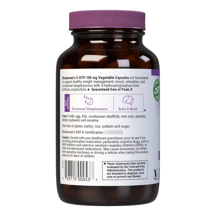 Este suplemento no es solo otra pastilla más. Está formulado con extracto puro de Griffonia simplicifolia, una planta africana conocida por sus propiedades naturales. Cada cápsula contiene 100 mg de 5-HTP, libre de PeakX y garantizado para ofrecerte solo lo mejor. ¿Lo mejor? Es vegano, sin gluten, sin soja y certificado kosher, para que puedas cuidar de tu salud sin comprometer tus valores.