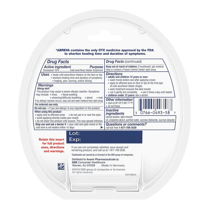 ¿Cansado de lidiar con el dolor, la picazón y la incomodidad del herpes labial? No sufras más. Abreva Docosanol Crema Labial es tu solución clínicamente probada para reducir significativamente el tiempo de curación. Imagina despertar sin esa molesta ampolla en solo 2.5 días. ¡Sí, es posible!