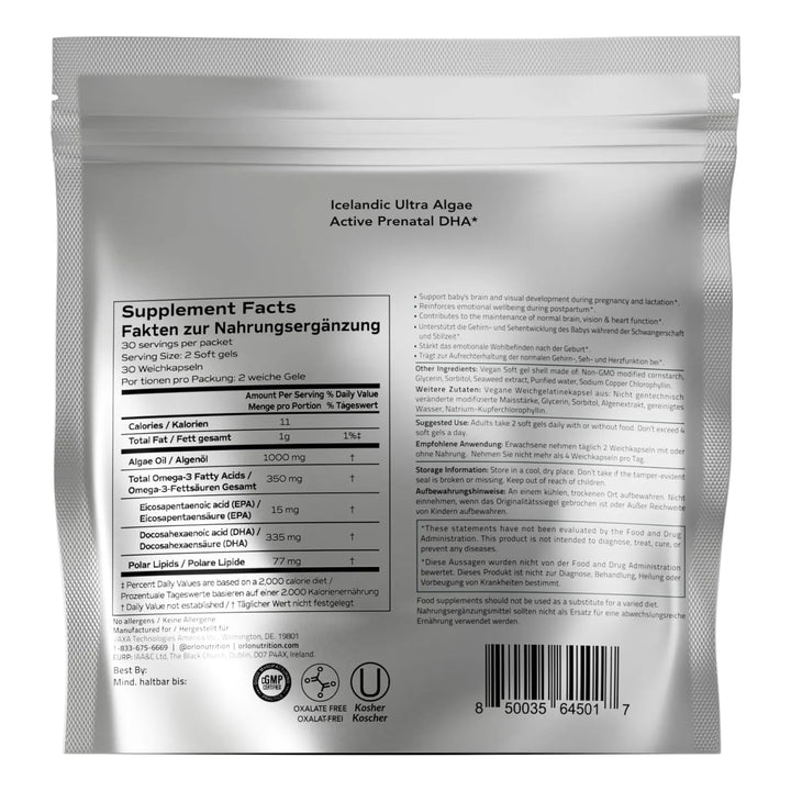 ¿Estás buscando un suplemento que apoye el desarrollo cerebral de tu bebé mientras cuida de tu salud durante el embarazo y la lactancia? El Aceite de Algas Omega 3 DHA Prenatal de Orlo es la solución que necesitas. Diseñado específicamente para mamás como tú, este suplemento no solo nutre a tu bebé, sino que también te brinda energía, equilibrio hormonal y fortalece tu sistema inmunológico.