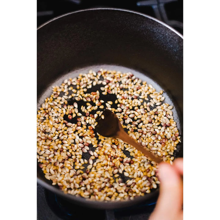 - Espera a que los granos revienten, agitando ocasionalmente.