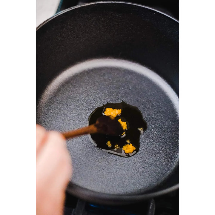 - Calienta una cucharada de aceite de coco en una olla a fuego medio.