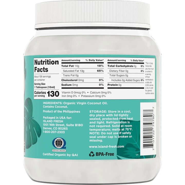 Imagina un producto que no solo mejora tu salud, sino que también cuida de tu piel y cabello, mientras añade un toque exótico a tus comidas. El Aceite De Coco Virgen Orgánico de Island Fresh es ese aliado multifuncional que estabas buscando. Con su certificación USDA orgánica y libre de OMG, este aceite es la elección perfecta para quienes buscan calidad y pureza en cada gota.
