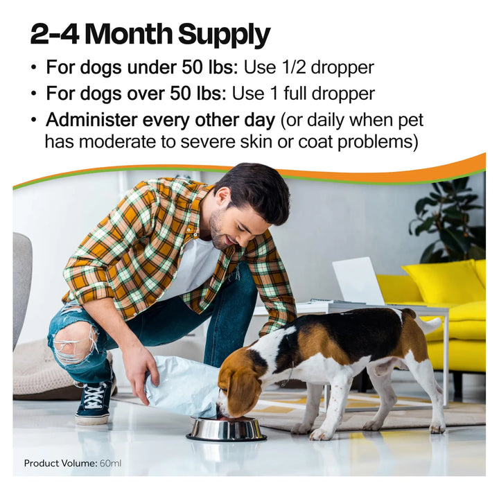 - Añade 1 gota por cada 5 kg de peso corporal en su comida, 1 o 2 veces al día.