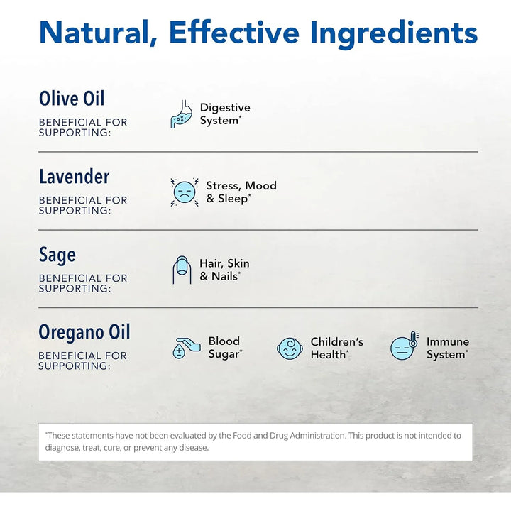 - Mezcla exclusiva de aceites naturales 💧: Ingredientes como aceite de orégano, lavanda y salvia silvestres para una experiencia reconfortante.