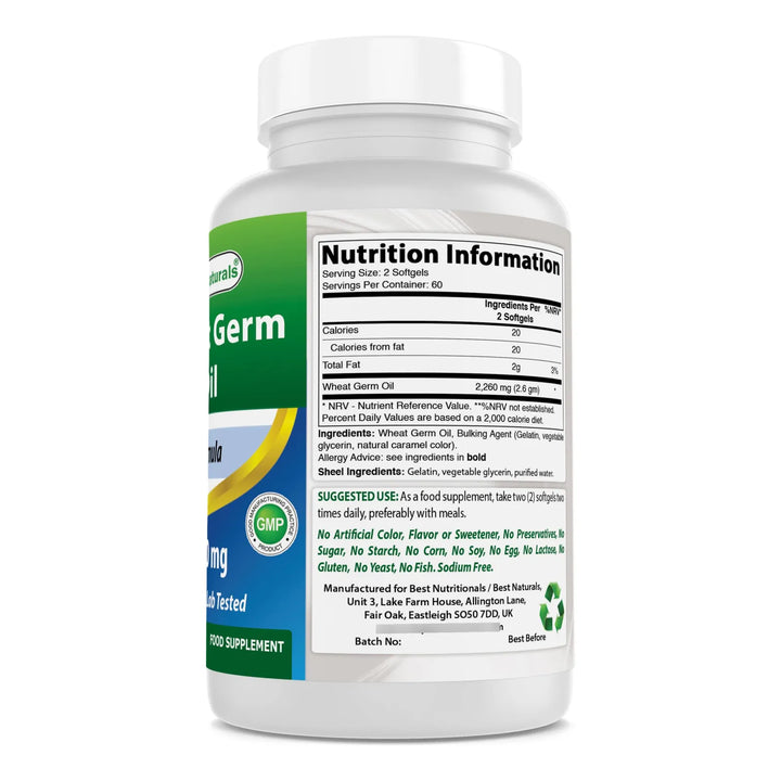 - 1130 mg de aceite de germen de trigo por cápsula blanda, potencia pura en cada dosis. 💊