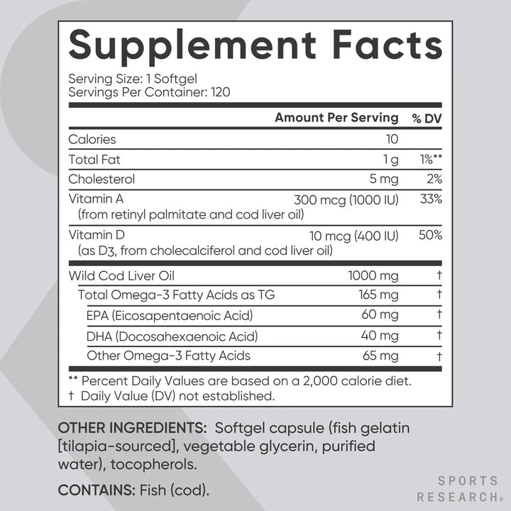 - Dosis potente: 1000 mg de aceite de hígado de bacalao por cápsula. 💊