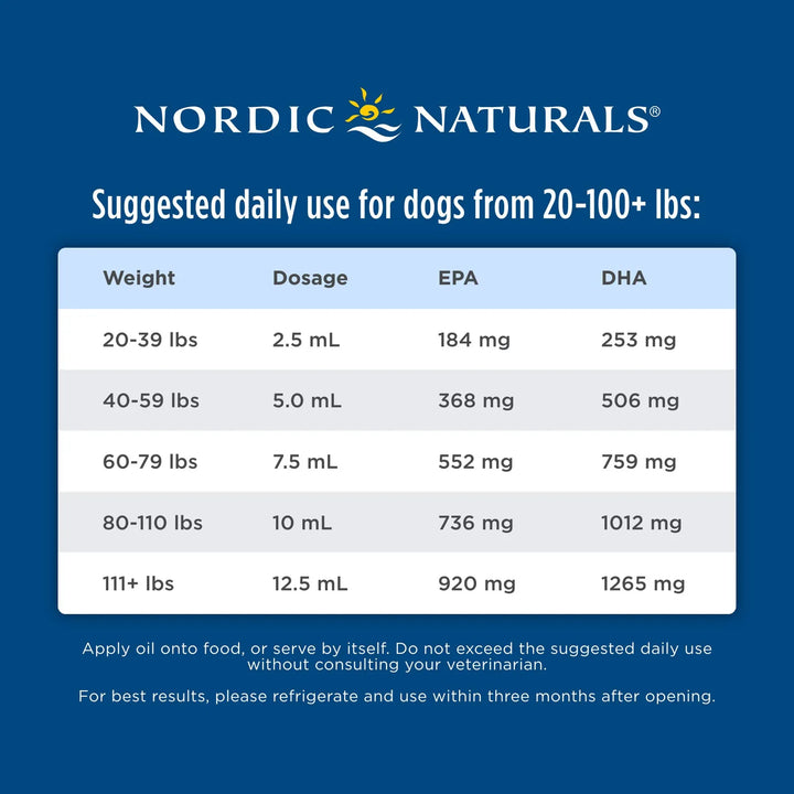 - Añade una cucharadita (1104 mg de Omega-3) sobre la comida de tu perro.