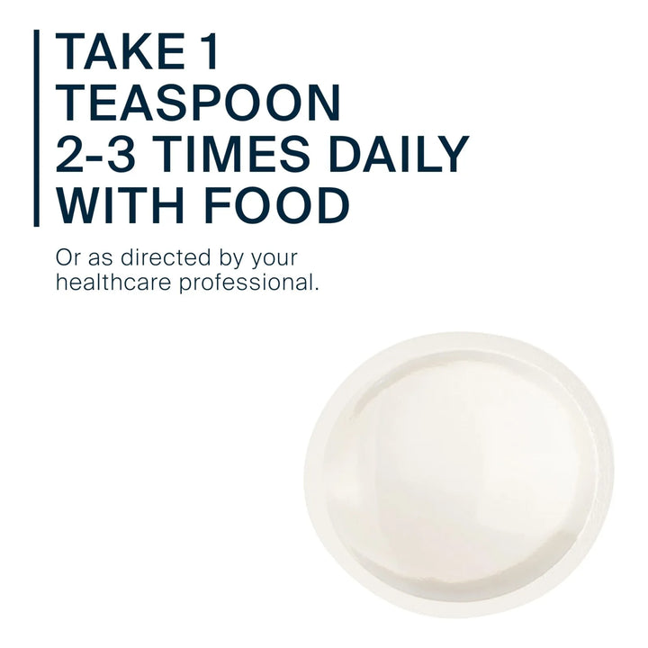 - Toma 1 cucharadita (6.8 fl oz) diaria, preferiblemente con alimentos.