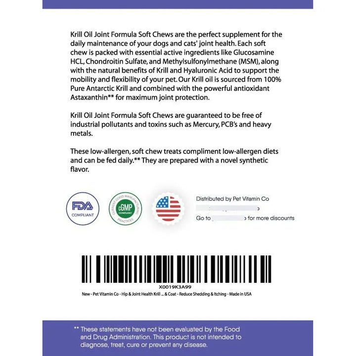 ¿Te duele ver a tu perro o gato sufrir de rigidez en las articulaciones? Imagina poder devolverle esa energía y vitalidad que tanto extrañas. Nuestro Aceite de Krill Masticable Suave está diseñado específicamente para apoyar la salud articular de tu mascota, sin importar su edad o raza. Con una fórmula rica en Omega 3, 6 y antioxidantes, cada masticable es un paso hacia una vida más activa y cómoda para tu mejor amigo.