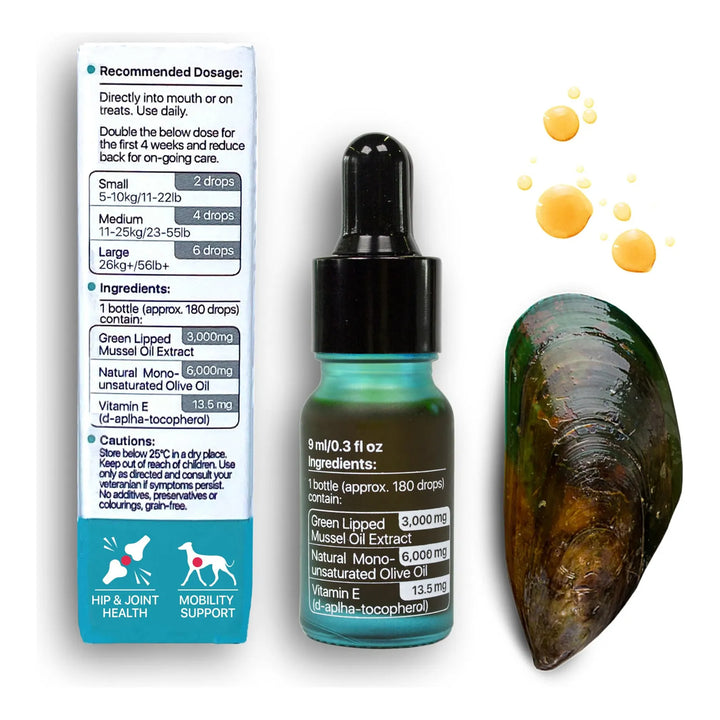 El Aceite de Mejillón de Labios Verdes no es un suplemento cualquiera. Es un concentrado de naturaleza pura, extraído con un método patentado que preserva cada gota de sus poderosos nutrientes. Los perros mayores pequeños y medianos encuentran en este frasco de 9ml un aliado para mantenerse ágiles, con menos molestias y más ganas de jugar.