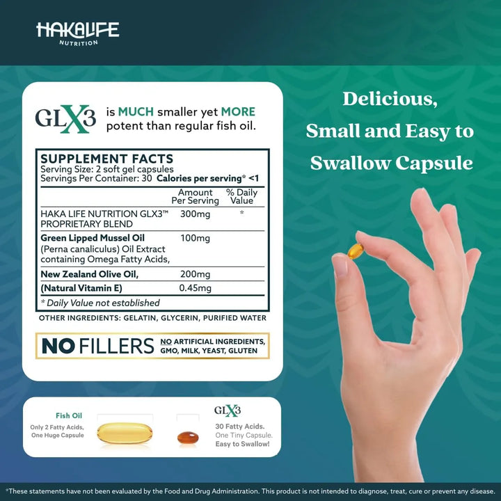 Cada cápsula está diseñada para actuar rápidamente, reduciendo la inflamación y fortaleciendo sus articulaciones. Con una potencia 247 veces mayor que los suplementos comunes de aceite de pescado, los resultados son visibles en poco tiempo. Tu mascota merece vivir sin límites, y con GLX3, eso es posible.
