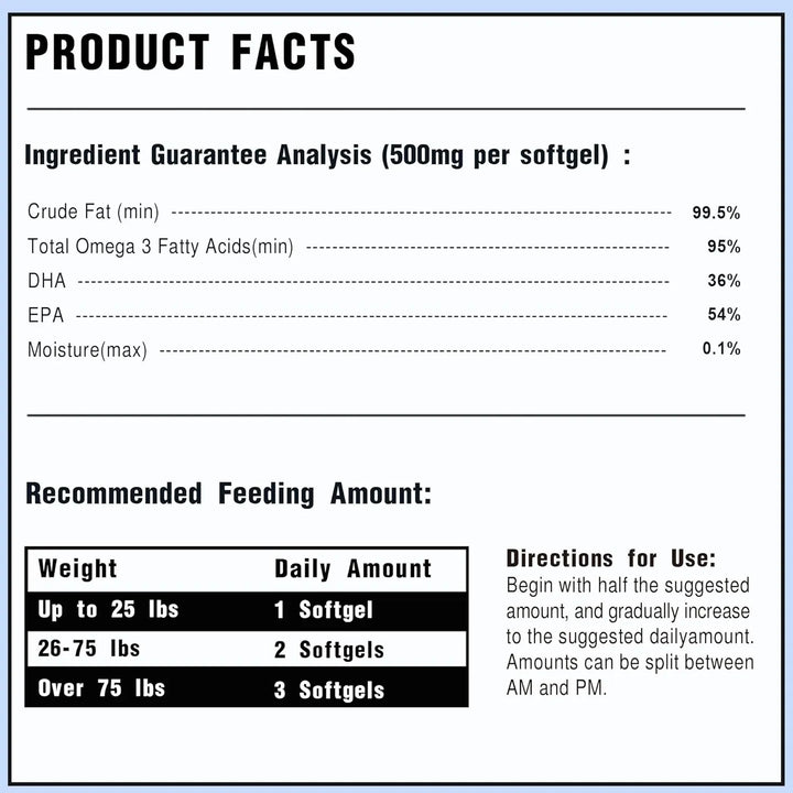 - ❤️ Salud Cardiovascular: Protege el corazón de tu mascota con un 90% de EPA y DHA, reduciendo el riesgo de enfermedades.