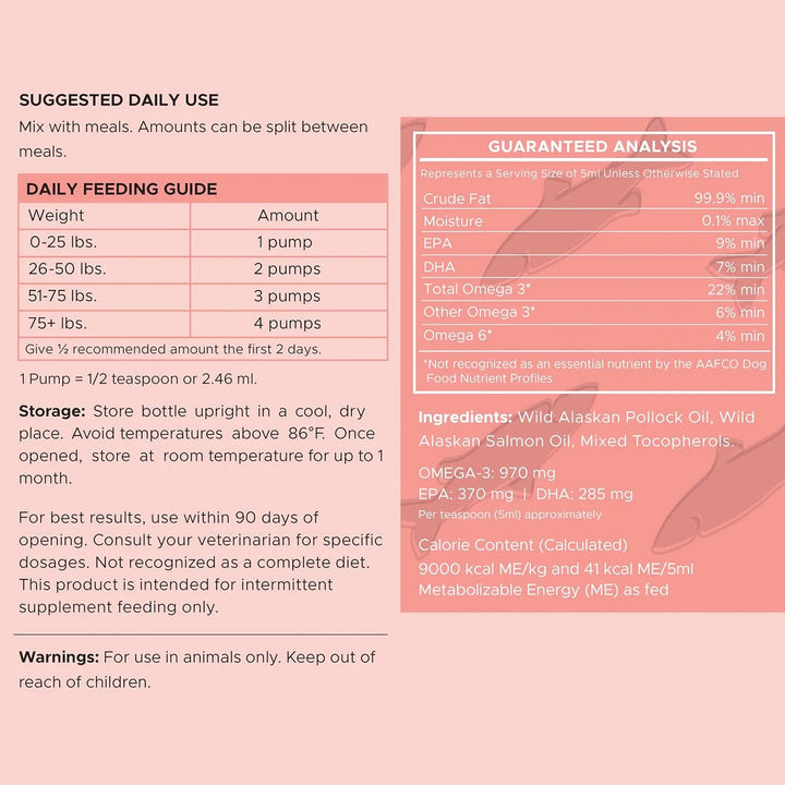 ¿Estás cansado de ver a tu perro rascarse sin parar? ¿Su pelaje luce opaco y quebradizo? Este aceite es la solución que has estado buscando. Con solo unas bombas al día, notarás cómo su piel se vuelve más suave, su pelaje más brillante y su energía se multiplica. Además, el delicioso sabor a pescado hará que lo devore sin problemas, ¡incluso los perros más quisquillosos lo amarán!