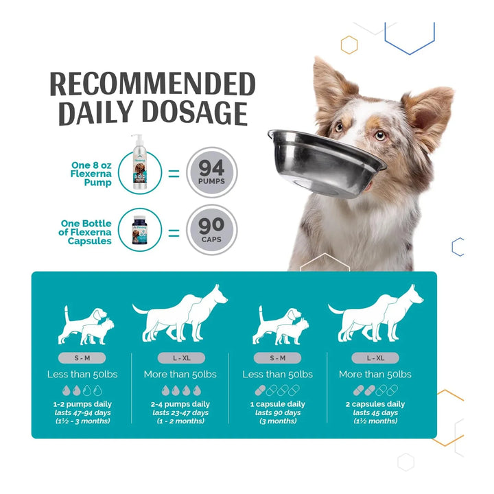 - Para perros +20 kg: 2 cápsulas al día (mañana y noche).
