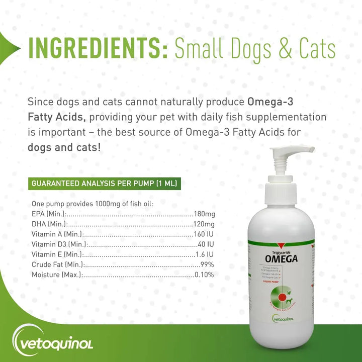 ¿Te duele ver a tu perro o gato sufrir de picazón, piel seca o articulaciones rígidas? Los ácidos grasos Omega 3 son esenciales para su bienestar, pero ellos no pueden producirlos por sí mismos. Nuestro Aceite de Pescado Líquido Omega 3 está específicamente formulado para llenar ese vacío nutricional, brindando alivio y vitalidad desde la primera dosis.
