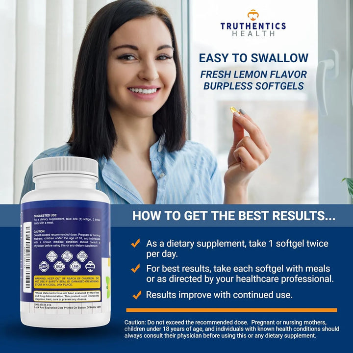 - Toma 2 cápsulas blandas al día, preferiblemente con las comidas.