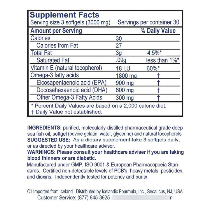 ¿Cansado de suplementos que prometen mucho pero no cumplen? Este no es uno de ellos. Con 3000mg de Omega-3 por dosis, incluyendo 900mg de EPA y 600mg de DHA, estás obteniendo un concentrado de salud para tu corazón, cerebro y sistema inmunológico. Sin ingredientes de baja calidad, sin riesgos, solo pureza islandesa en cada cápsula blanda.