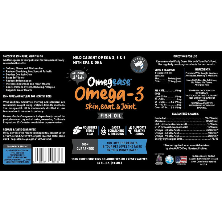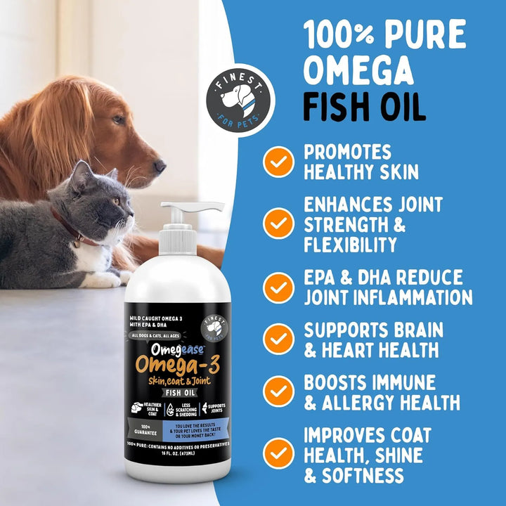 ¿Tu perro o gato sufre de piel seca, alergias o un pelaje sin vida? Imagina poder devolverle la vitalidad y el brillo a su piel y pelo con un solo producto. El Aceite de Pescado Puro Omega 3, 6 y 9 está diseñado para nutrir desde adentro, ofreciendo una solución natural y efectiva para los problemas más comunes en mascotas.