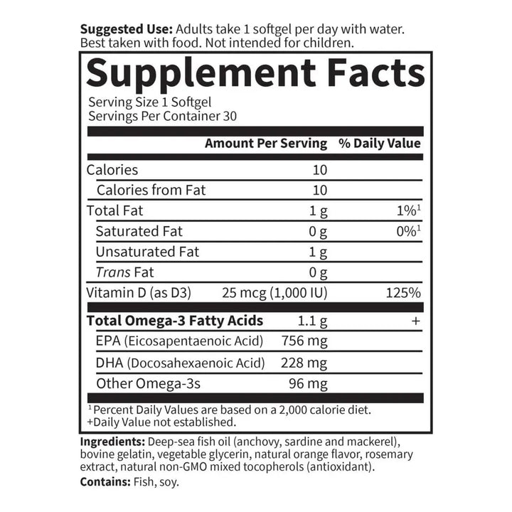 - Concentración ultra premium: 1,100 mg de Omega 3 por cápsula (756 mg EPA + 228 mg DHA) 💎