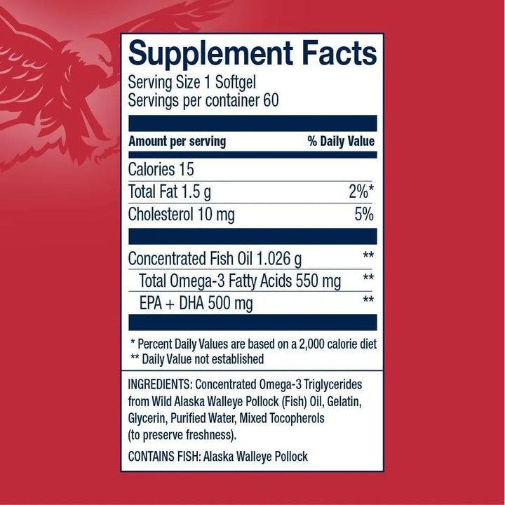 ¿Te preocupa la calidad de lo que consumes? Nuestro aceite de pescado proviene del abadejo de lucioperca de Alaska, capturado en la naturaleza y libre de contaminantes. Sin OMG, sin gluten y sin ingredientes artificiales, es la opción más pura y confiable para tu salud. Cada cápsula está diseñada para ser fácil de tragar y rápida de absorber, maximizando sus beneficios desde el primer día.