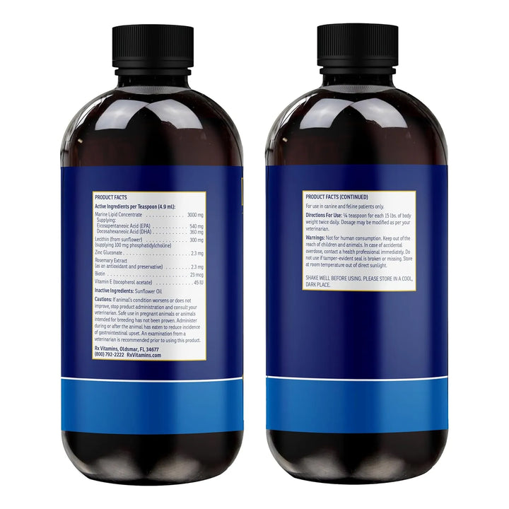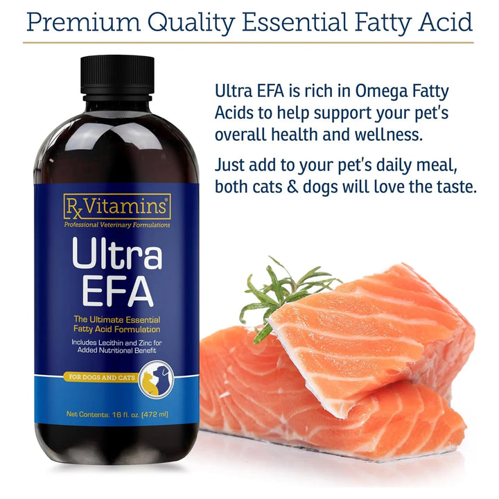 Rx Vitamins Aceite de pescado Ultra EFA Omega 3 para perros y gatos, promueve la salud del corazón, el cerebro y las articulaciones con vitamina E, biotina y zinc, aceite de pescado líquido para