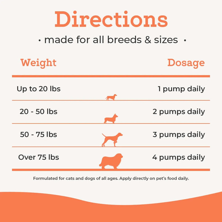 - Bomba la cantidad recomendada (según el peso de tu mascota) directamente sobre su comida seca o húmeda.