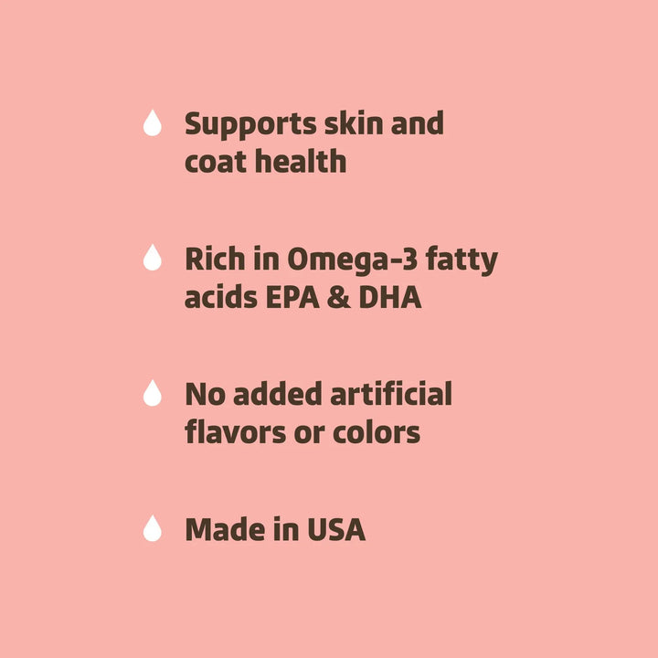 El aceite se extrae del salmón salvaje de Alaska, una fuente rica en ácidos grasos esenciales. Estos nutrientes penetran en el organismo de tu mascota, hidratando su piel desde dentro, reduciendo la inflamación y lubricando sus articulaciones. Es como un elixir de juventud en cada gota.