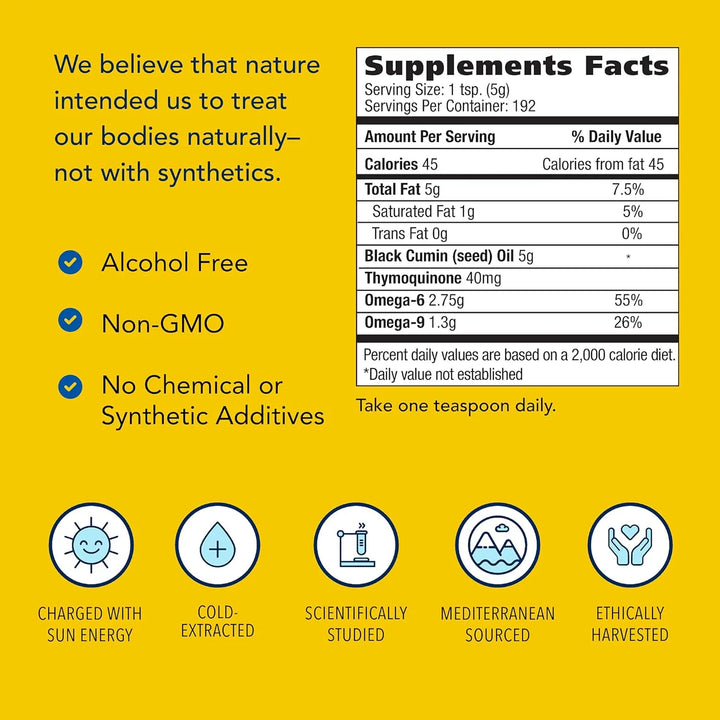 ¿Cansado de productos diluidos o de baja calidad? Este aceite proviene exclusivamente de semillas mediterráneas/turcas, reconocidas por su alta concentración de timoquinona, un compuesto estudiado por sus beneficios cardiovasculares. Cada gota contiene la esencia de ingredientes salvajes recolectados en regiones vírgenes, garantizando una potencia que marcará la diferencia en tu salud.