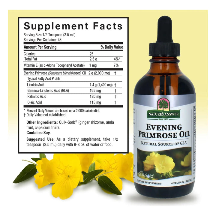 ¿Sueñas con una piel radiante, un cabello fuerte y un equilibrio natural en tu cuerpo? El Aceite Líquido de Onagra Prensado en Frío de Nature's Answer es tu aliado perfecto. Este poderoso elixir, extraído de las semillas de la flor de onagra, es una fuente pura de ácido gamma-linolénico (GLA), un ácido graso omega-6 esencial que tu cuerpo necesita pero no produce por sí solo. 🌿