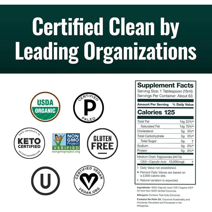 ¿Cansado de productos que prometen mucho y cumplen poco? Nuestro aceite MCT no solo está certificado por USDA como orgánico y libre de OMG, sino que cada lote es probado en laboratorios independientes para garantizar su pureza y calidad. Sin metales pesados, sin gluten, solo lo mejor de la naturaleza en una botella de vidrio reciclable y eco-friendly.
