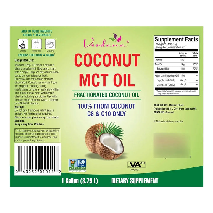 Imagina un producto que no solo mejora tu energía diaria, sino que también apoya tus metas fitness y bienestar. El Aceite De Coco MCT Orgánico Verdana es tu aliado perfecto. Extraído 100% de coco y sin aceite de palma, este galón de pureza te ofrece solo lo mejor: MCT verdadero con C8 y C10, los ácidos grasos más eficientes para tu cuerpo.