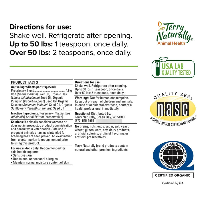 Imagina ver a tu mascota feliz, sin rascarse constantemente, con un pelaje brillante y una piel saludable. Este producto está diseñado para perros de todas las edades y razas, proporcionando los ácidos grasos esenciales que su cuerpo no puede producir por sí solo. Con solo una cucharadita al día, estarás invirtiendo en su bienestar a largo plazo.