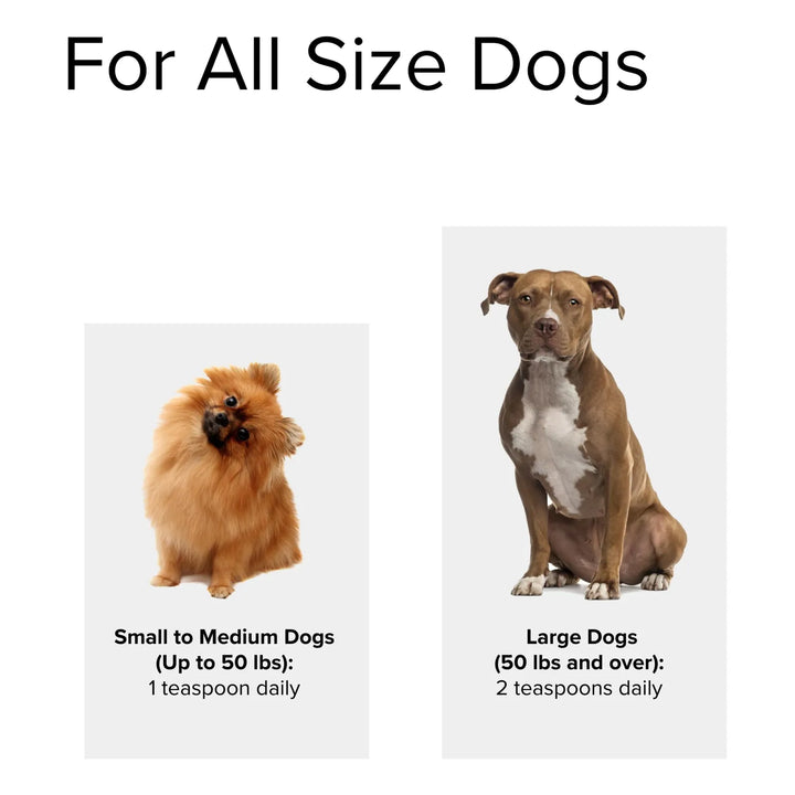 - Para perros hasta 50 lbs: 1 cucharadita al día.