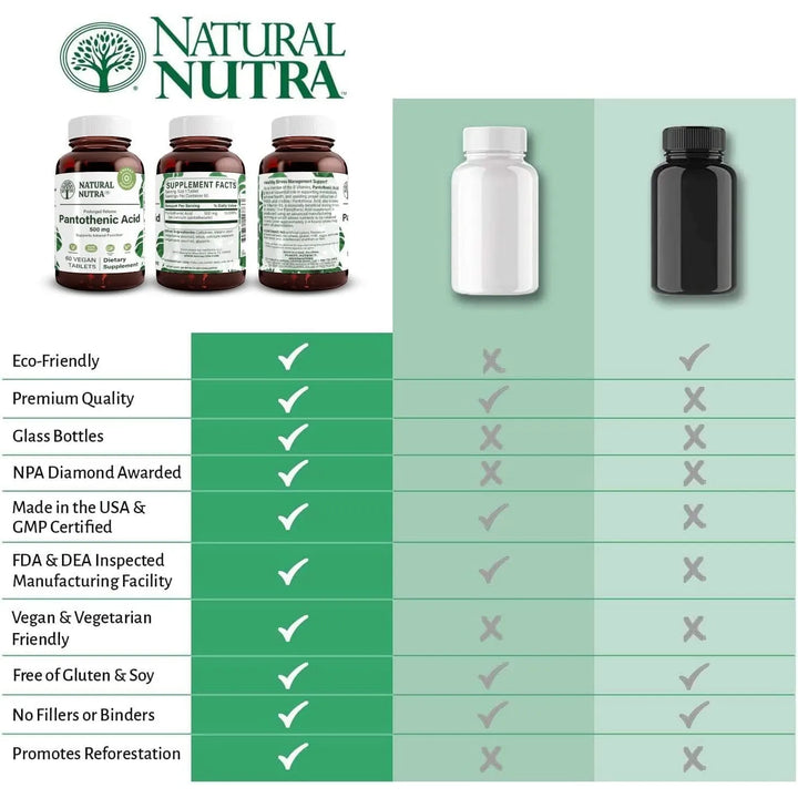 ¿Sientes que el estrés te consume día a día? ¿Te cuesta mantener la energía suficiente para cumplir con todas tus responsabilidades? Imagina despertar cada mañana con vitalidad, sintiendo cómo tu cuerpo responde con claridad y fuerza. El Ácido Pantoténico (Vitamina B5) de Liberación Prolongada 500 mg está diseñado para apoyar tu bienestar desde adentro, ayudándote a recuperar el equilibrio que tu cuerpo necesita.