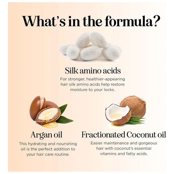 - 💖 Reparación Intensa: La proteína de seda y los aceites naturales reparan el cabello dañado, devolviéndole su fuerza y elasticidad.