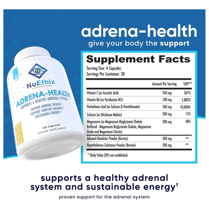 Diseñado con una fórmula científica que combina vitaminas y minerales esenciales, Adrena-Health trabaja directamente en el soporte de tus glándulas suprarrenales, responsables de regular el cortisol (la hormona del estrés). Cuando estas glándulas funcionan de manera óptima, experimentas menos fatiga, más resistencia al estrés y una sensación de calma que te permite disfrutar cada momento.