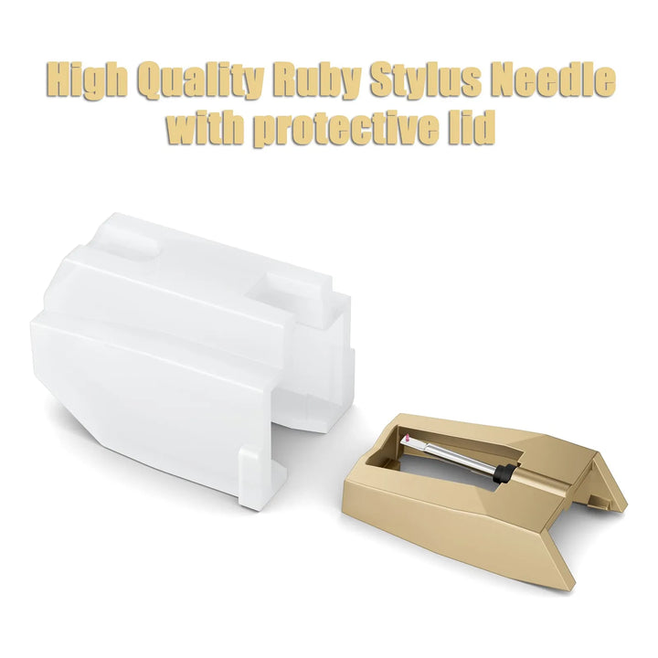Con un diseño sin saltos y una calidad de sonido superior, esta aguja dorada está equipada con un lápiz óptico de diamante cónico que garantiza un seguimiento potente y preciso. Ya sea que estés reproduciendo 33 1/3, 45 o 78 RPM, cada nota sonará como fue concebida. ¿Te preocupa la compatibilidad? No te estreses, esta aguja es un reemplazo perfecto para la mayoría de las marcas de tocadiscos en el mercado.