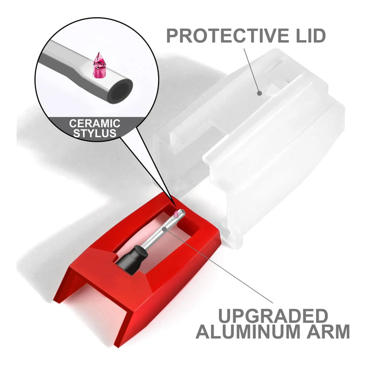 Imagina sumergirte en tus canciones favoritas con una claridad de audio excepcional y un seguimiento preciso que reduce la distorsión al mínimo. Cada nota, cada detalle cobrará vida como nunca antes. Nuestras agujas están fabricadas con materiales de alta calidad, garantizando una durabilidad que te acompañará en cada sesión de escucha. Ya sea que tengas un tocadiscos Crosley, Victrola, ION o LP, estas agujas se adaptarán perfectamente, ofreciéndote una instalación sencilla y sin complicaciones.