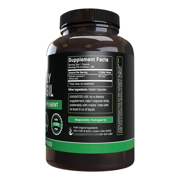 - Ingrediente único: Cápsulas rellenas solo con albahaca sagrada para máxima pureza. 🌿