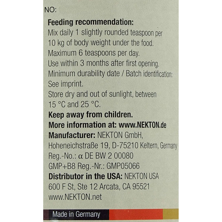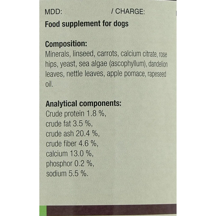 ¿Sabías que muchos alimentos comerciales para perros contienen ingredientes de baja calidad que pueden afectar su salud a largo plazo? Nuestro producto es la solución perfecta para dueños conscientes que buscan lo mejor para sus mascotas. Formulado en Alemania con estándares de alta calidad, este suplemento está libre de "adivinanzas" —sabes exactamente lo que le das a tu perro. Además, es ideal cuando incluyes órganos y huesos en su dieta, complementando perfectamente su nutrición.