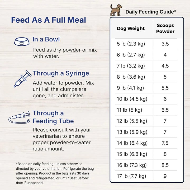 El Alimento Nutritivo Para Perros actúa directamente en el sistema digestivo de tu mascota, proporcionando nutrientes de rápida absorción que ayudan a recuperar su energía y fortalecer su sistema inmunológico. Los electrolitos incluidos en la fórmula mantienen el equilibrio hídrico, mientras que los macronutrientes altamente digeribles previenen problemas gastrointestinales.