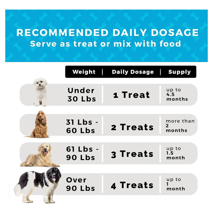 - Administra 1-2 golosinas al día según el tamaño de tu perro.