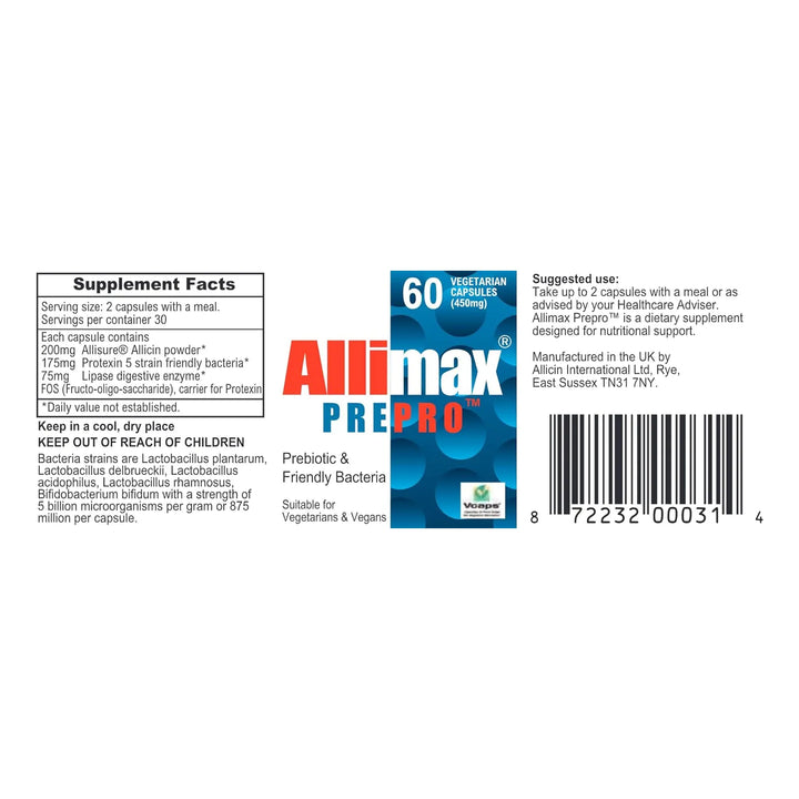 - Tomar 1 cápsula de Allimax PrePro con un vaso de agua antes del desayuno.