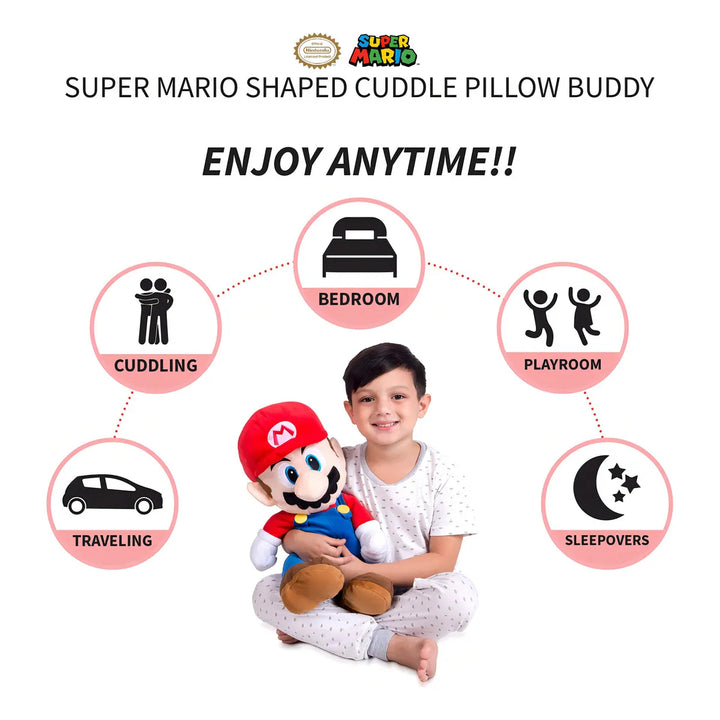 Transforma las noches y los juegos al instante: su material suave reduce la ansiedad al dormir, mientras que el diseño inspira creatividad durante el día. Simplemente colócala en la cama o el sofá, y deja que Super Mario proteja los sueños de tu pequeño.