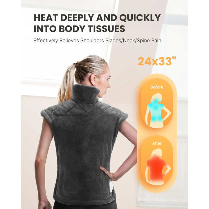 Con su tamaño extra grande, cubre desde el cuello hasta las piernas, ofreciendo un alivio completo. Las cuentas de microvidrio de alta calidad no solo distribuyen el calor de manera uniforme, sino que su peso terapéutico (1.2 libras) actúa como una compresa relajante, multiplicando los beneficios. ¿Lo mejor? Sus 6 niveles de calor ajustables y 3 temporizadores te permiten personalizar cada sesión, mientras el apagado automático garantiza tu seguridad.