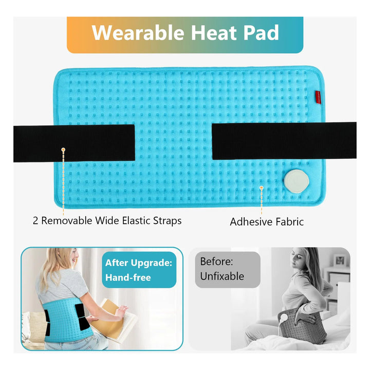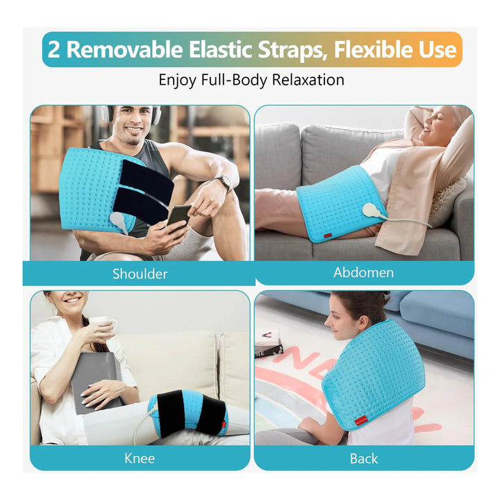 Con su tamaño generoso de 30 x 60 cm, esta almohadilla cubre áreas extensas como la espalda, hombros o piernas, ofreciendo un calor uniforme que penetra profundamente en los músculos. Las 2 correas elásticas ajustables garantizan que se mantenga en su lugar, incluso si te mueves, mientras que su tela suave y lujosa hace que cada sesión sea una experiencia placentera.