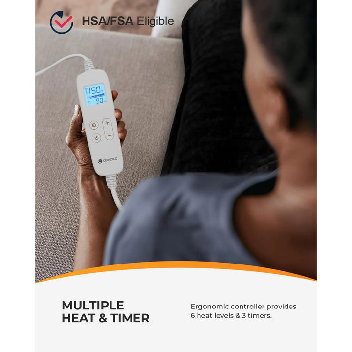Con seis niveles de calefacción ajustables y tres temporizadores, esta almohadilla se adapta a tus necesidades específicas. ¿Prefieres un calor suave para relajar los músculos o una temperatura más intensa para aliviar ese dolor persistente? Tú decides. Además, su diseño extragrande (24 x 37 pulgadas) asegura que cubra áreas amplias como la espalda, el cuello o los hombros, proporcionando un alivio uniforme y profundo.