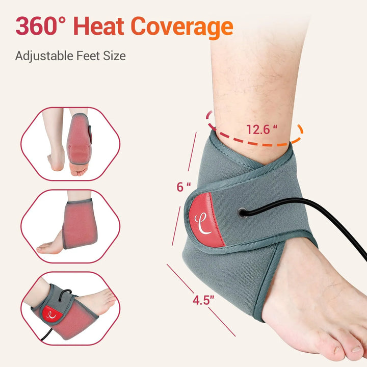 El calor penetrante estimula la circulación sanguínea en la zona afectada, reduciendo la rigidez y promoviendo la reparación de tejidos. Para usarla: (1) Envuelve la almohadilla alrededor del tobillo/pie, (2) Ajusta las correas para un contacto firme pero cómodo, (3) Conecta el cable USB y selecciona tu nivel/tiempo preferido, (4) Relájate mientras el calor trabaja. ¡Repite 2-3 veces al día para mejores resultados!